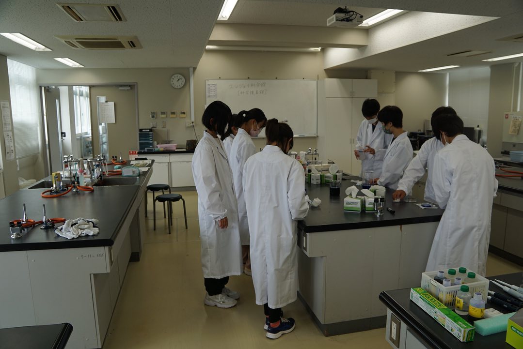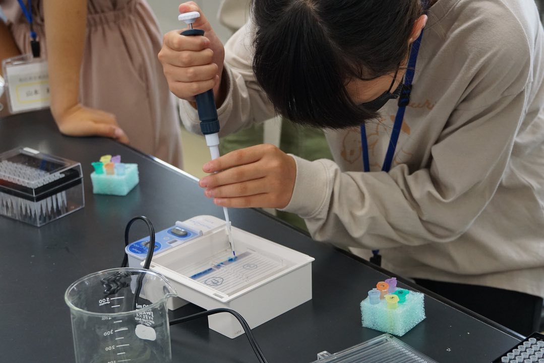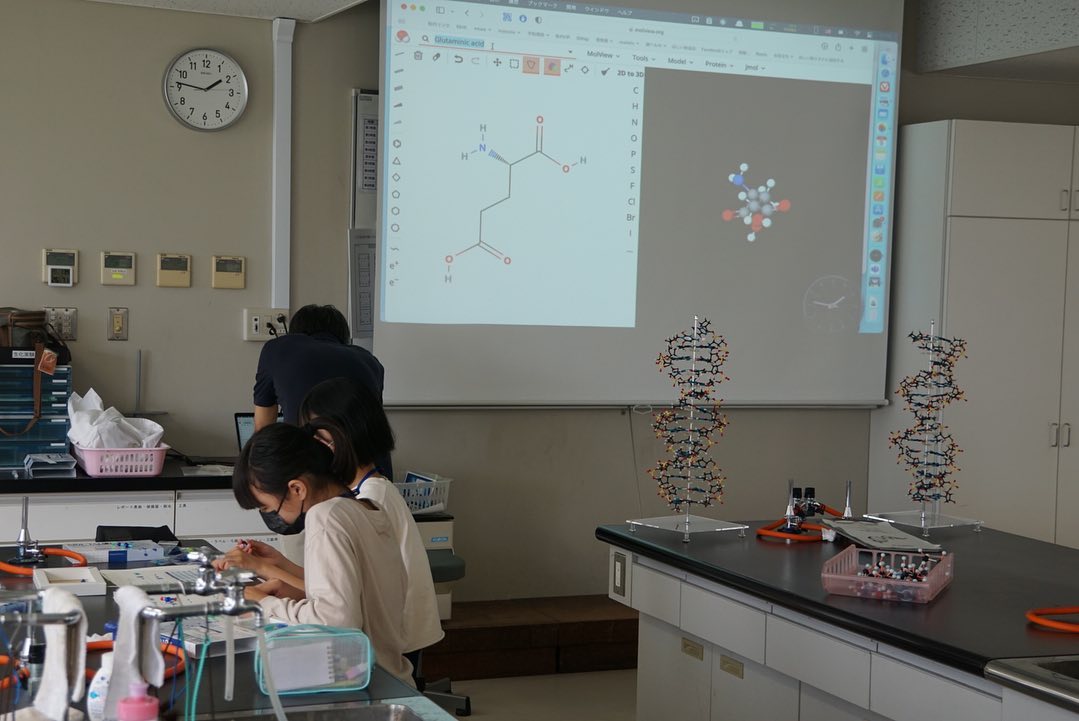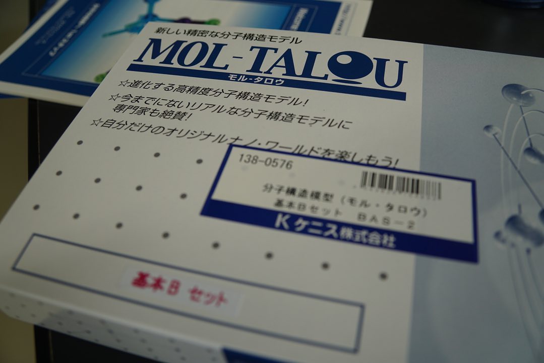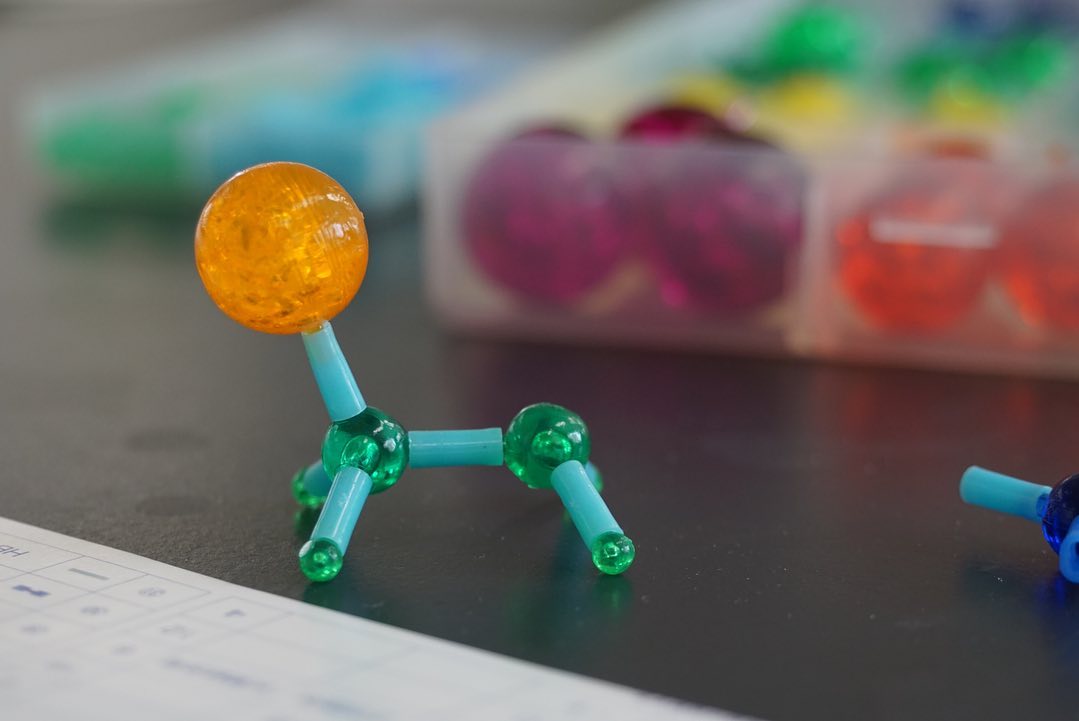 化学バイオコースでは、制限酵素を用いたDNA鑑定を実施。待ち時間に分子模型を作りました。