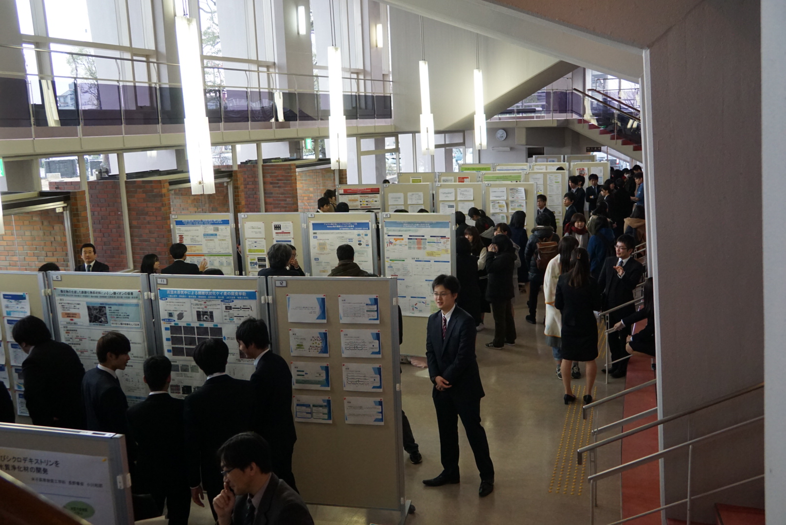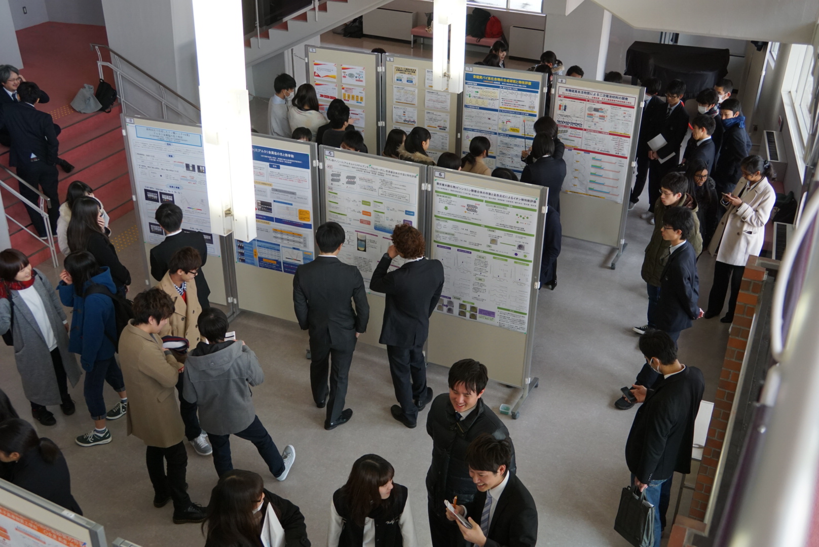 卒業研究発表会、午後の部、ポスター発表が始まっております。