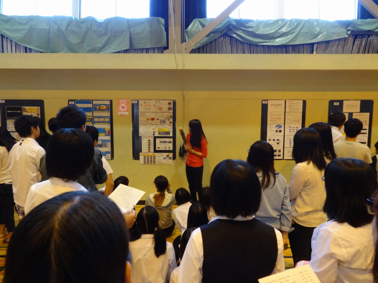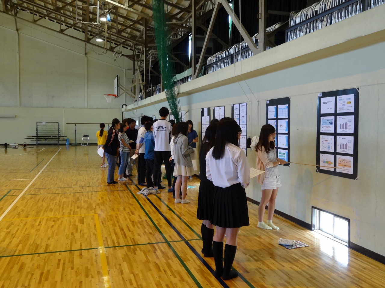 本日、9:45~11:30、本校第一体育館にて卒業研究中間発表会が行われました。