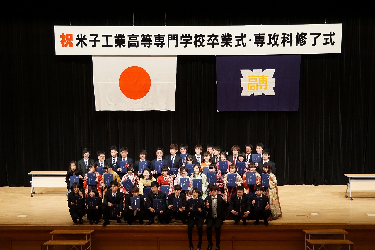 物質工学科本科生41名、専攻科物質工学専攻3名が5年もしくは2年の学業を終え、次のステップへ一歩を踏み出す日となりました。