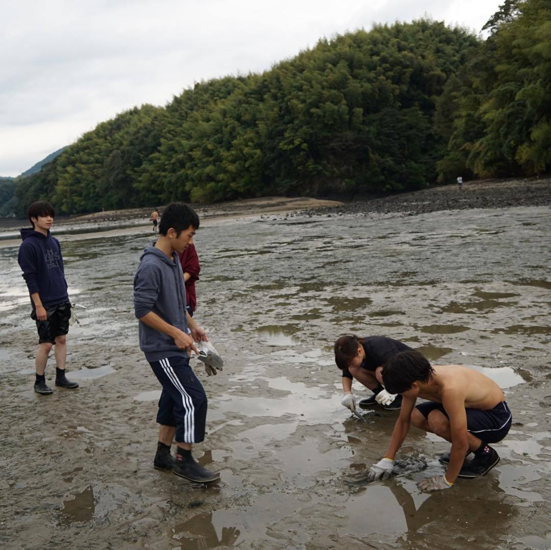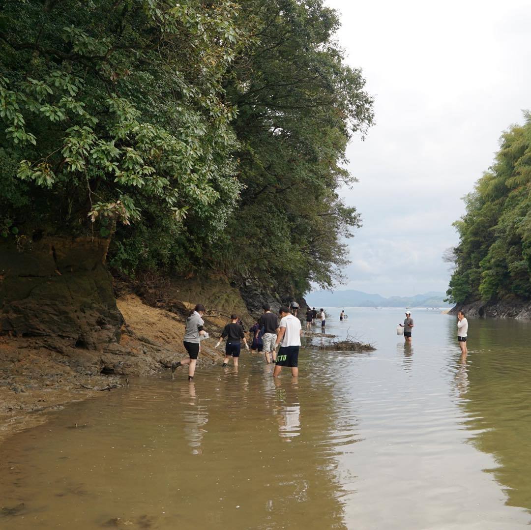 竹原臨海実習1日目2018年10月12日昨日から4年生は広島県竹原市にある、広島大学竹原ステーションで臨海実習をしています。 初日はバスで移動後、施設近くにある干潟でベントス(底生生物)などの生物採取をおこないました。干潟では、生きた野生のカブトガニ探しで盛り上がりました。 なお、カブトガニは絶滅危惧種のため、採取は行わずその場で観察・リリースしています。@ 広島大学生物生産学部附属水産実験場