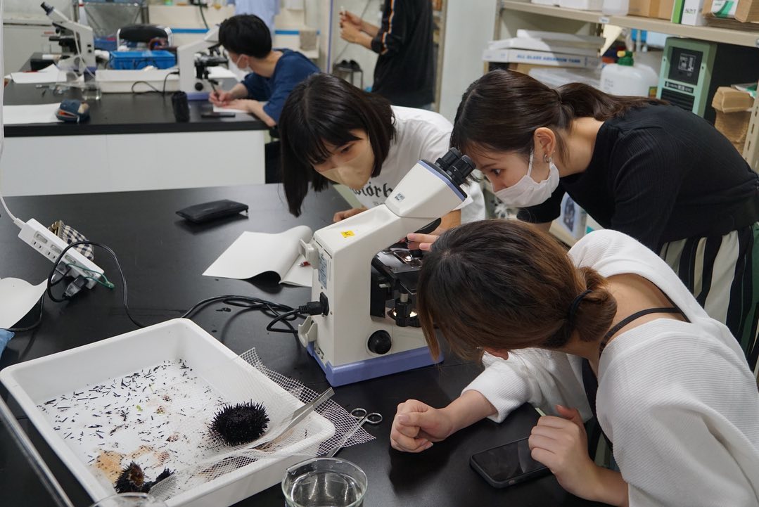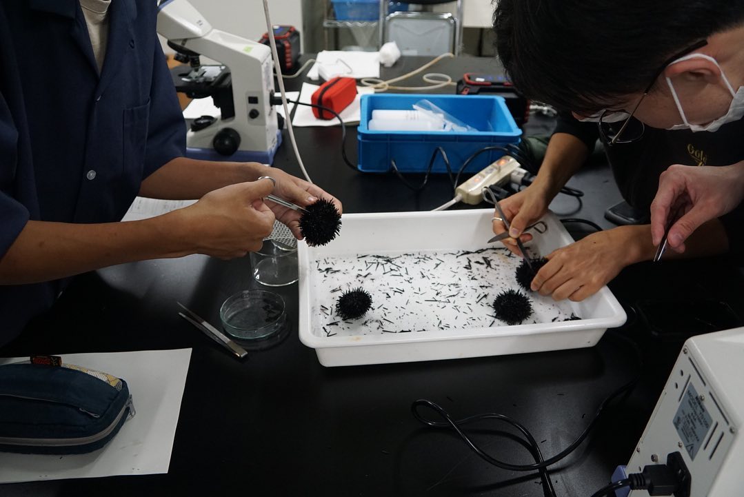 広島臨海実習1日目2022年7月14日広島大学竹原ステーションにおける臨海実習初日。到着後、ウニの発生実験を開始しました。ウニの雌雄を判別し、受精させ、卵割を観察していきます。今日は、2卵割まで観察することができました。
