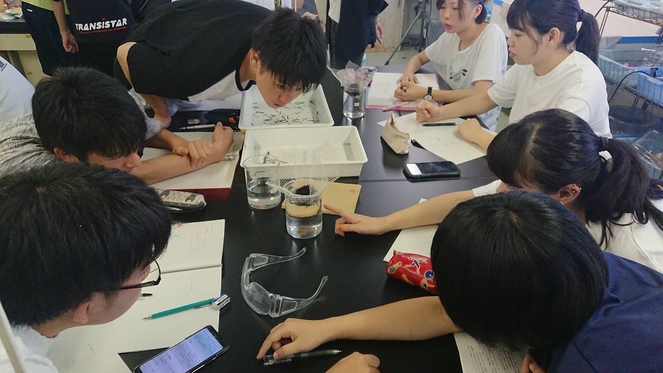 4年広島臨海実習2019年7月21日7月18~20日、4年生は広島県竹原市にある、広島大学大学院統合生命科学研究科附属瀬戸内圏フィールド科学教育研究センター竹原ステーションで臨海実習を行いました。 .山陰地方にはない干潟を歩き、ベントス(底生生物)の採取をして同定したり、ウニを受精させ受精卵の卵割を観察したりしました