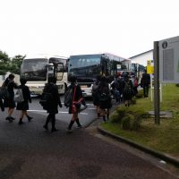 今日、明日は全学年で特別行事の日です。 1年:遠足(松江方面) 2年:校外研修旅行 三瓶青少年交流の家 3年:工場見学旅行(関西方面) 4年:インターンシップ報告会 5年:学年行事 写真は3年生が関西へ向かおうとしているところです。(学内)