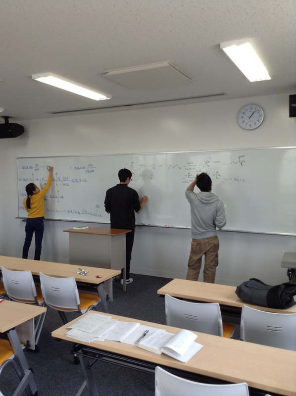 研究はその最初が大切だと考えています。スポーツでいうと最初に正しい基礎フォームを身に付けるようなものです。学生は、入室後に有機合成のための基礎(実験器具の使い方、機器の操作、パソコンの操作、文献調査など)の研修を行った後、各人毎に研究テーマを与え卒業研究に入ってゆきます。実験報告をパソコンを使い定期的に作成提出してもらって、結果をまとめる能力と化学構造式を含む文書作成能力の向上を図っています。これは、社会に入ってすぐ役に立つと感謝されています。また、輪読や各種勉強会を毎週おこない、色々な切り口から学習してもらいます。また、定期的に全員の前で報告会を行って、自分の研究成果を発表する機会を設けています。